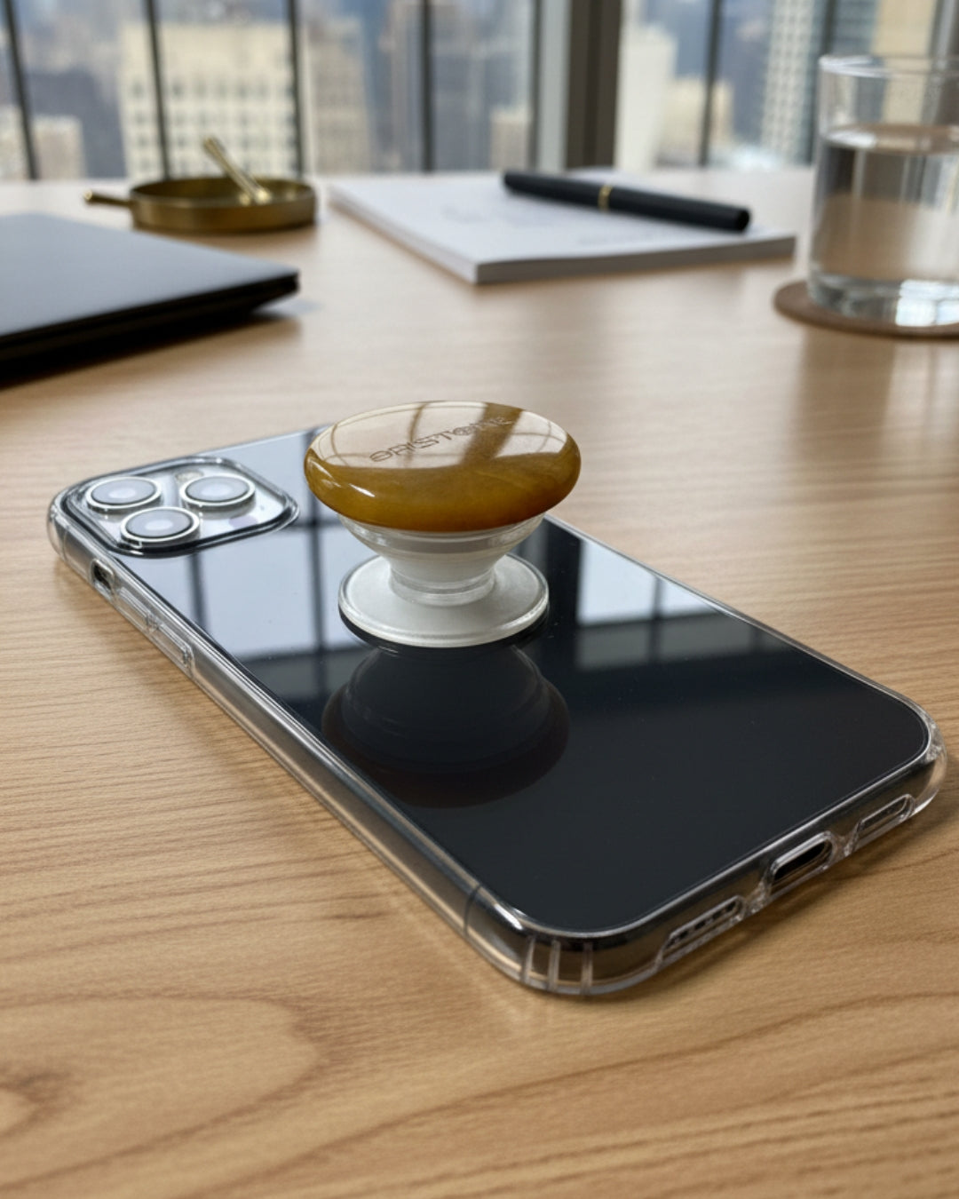The ORISTONE™ Phone Grip is shaped from real stone and carefully hand-finished to highlight the subtle textures in every piece.
